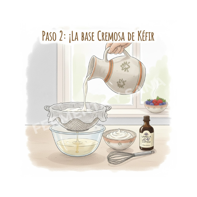 Esta receta utiliza el kéfir como base sin someterlo a calor, asegurando la integridad de los probióticos.